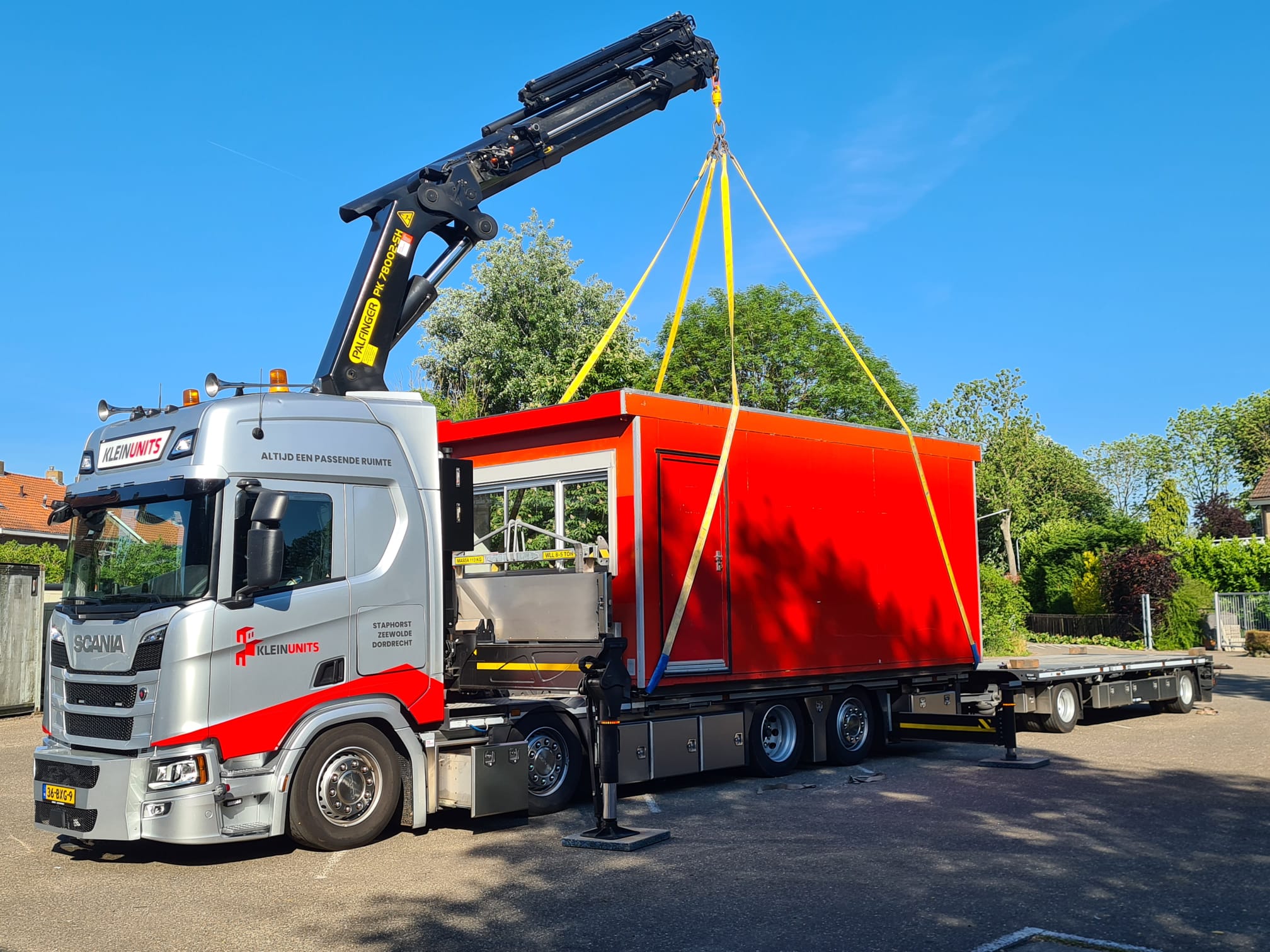 Onder meer vanwege brandveiligheid was het nodig dat er iets anders, iets veiligers, voor in de plaats zou komen. Dat is gelukt. Via Klein Units in Dordrecht hebben we een prachtige vervanging hiervoor op de kop kunnen tikken. .Een ruime unit van 6 x 6 meter is vorige week in onze loods geplaatst. Een hele onderneming die vlekkeloos is verlopen. Wat een vakmanschap en een ruimtelijk inzicht!